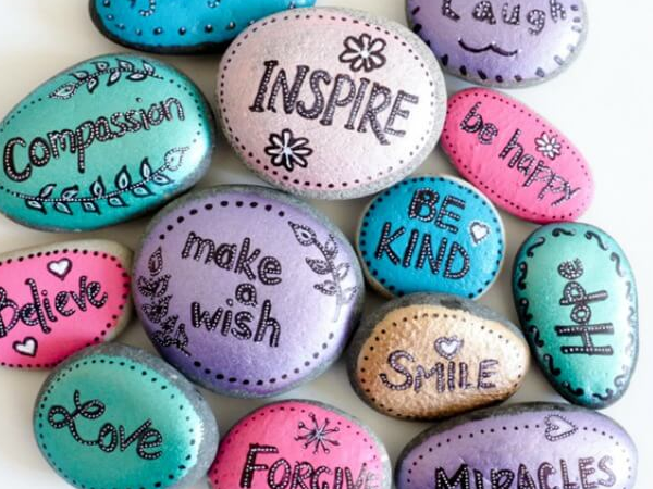 Participants paint rocks with inspirational messages or colorful designs and then hide them in public places for others to find. The idea is that the rock will brighten someone's day and remind them that there is good in the world.