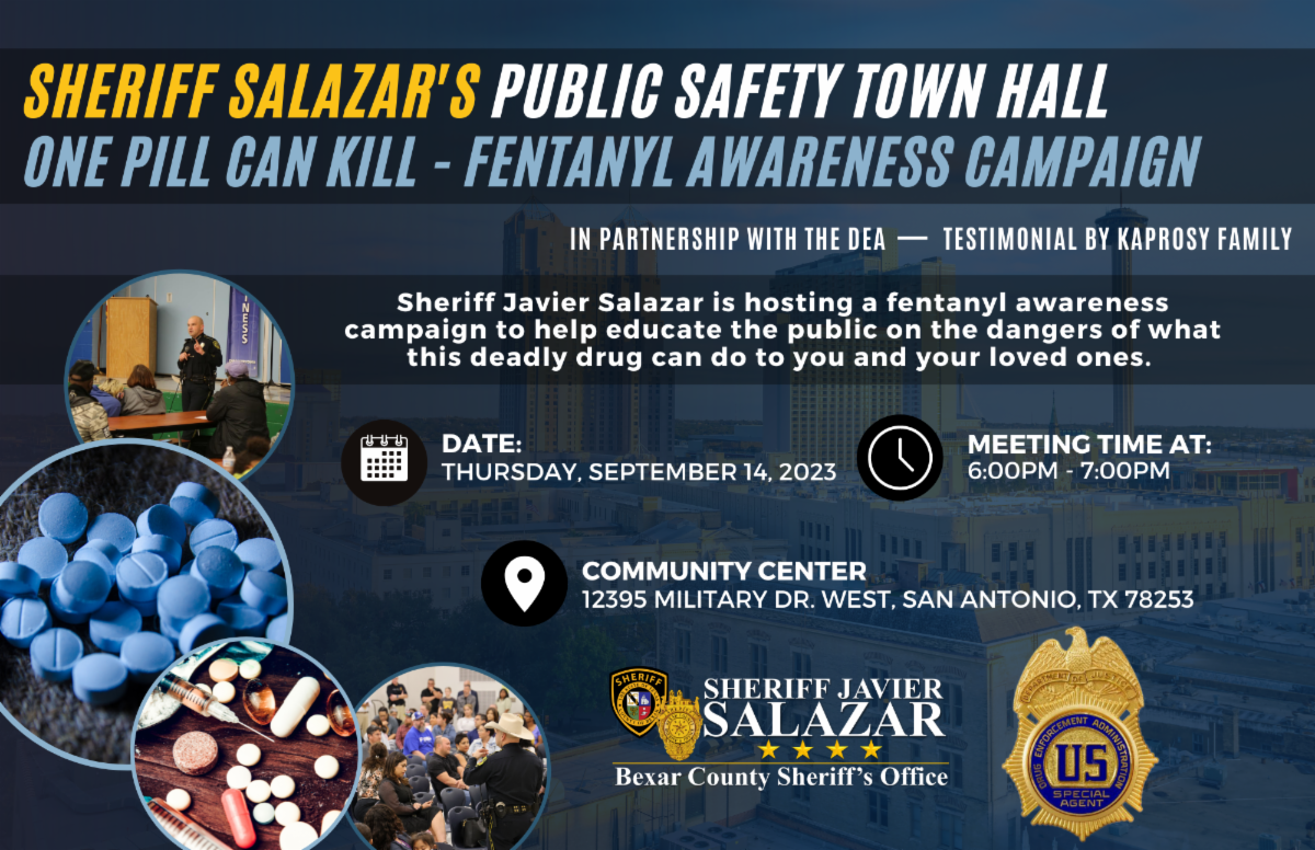 As concerned citizens, we urge all residents of our community to attend the upcoming Town Hall presentation from the Bexar County Sheriff's Office. The topic of "One Pill Can Kill" is one that is incredibly important, especially in light of the ongoing fentanyl epidemic.