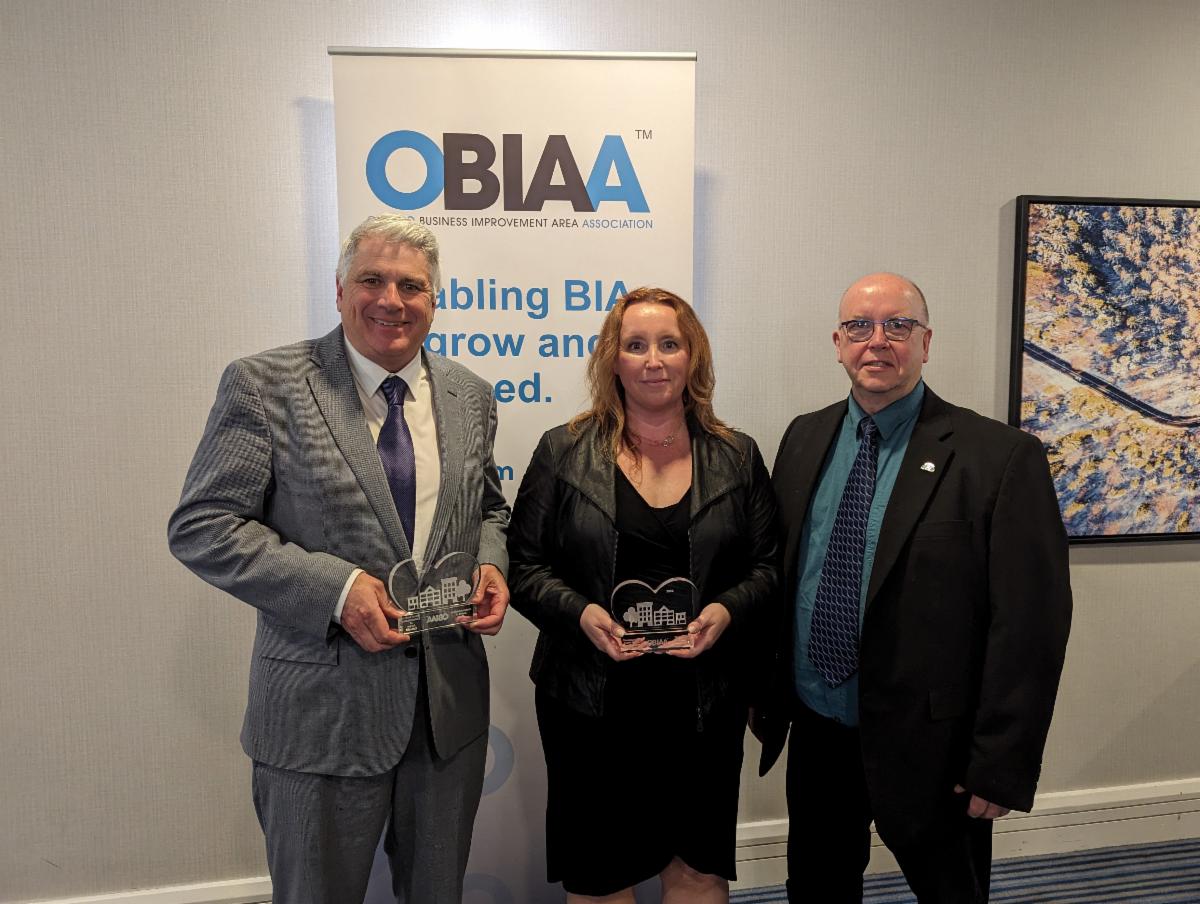Community partnership recognized! Bruce County has been awarded two 2024 Ontario Business Improvement Area (OBIAA) ‘Awards of Excellence’. The OBIAA recognizes innovative programs in revitalization, support and improvements for downtowns. The Municipality of Kincardine, The Municipality of Arran-Elderslie, and Bruce County, won two awards at the OBIAA Awards Gala during the 2024 Annual BIA Conference on April 29, 2024.