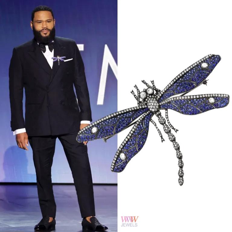 Who Wore What Jewels highlights brooches as the hottest accessory of the night! Host Anthony Anderson stole the show with four distinctive pin changes throughout the televised event.