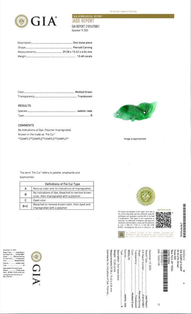 Because of its superior quality, it was known in the trade as "Fei Cui," separating it from all other jade and jade-like materials.
