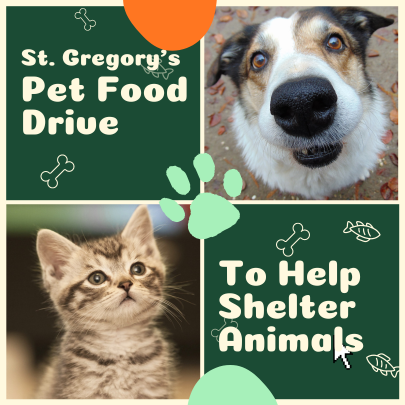 | Bring your pet to this year's Blessing of the Pets on Saturday, October 5th at 10 AM at St. Gregory's! All pets are warmly welcome! Note: we will be collecting pet food from Sunday, September 22 through the Blessing of the Pets so that we may help support shelter animals. | | | |