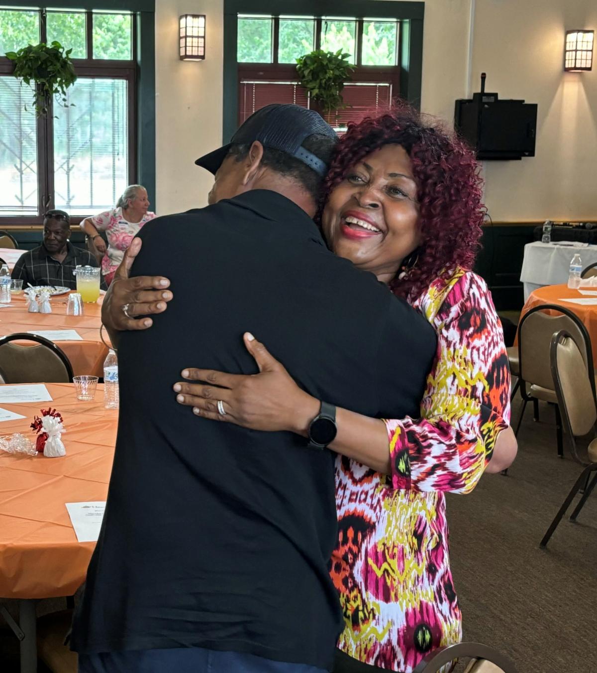 Summer barbecues have truly become a beloved tradition at all Hearth sites, bringing together residents to connect and enjoy a meal together. The recent visit of one of Hearth's founders, Ellen Feingold, and CEO Rhonda Pieroni to the Four Corners location added an extra touch of joy to the festivities, creating unforgettable moments for all. A sincere thank you to Hearth's Vice Chair, Alveta Haynes, who was integral to this event by assisting with its organization and food preparation.