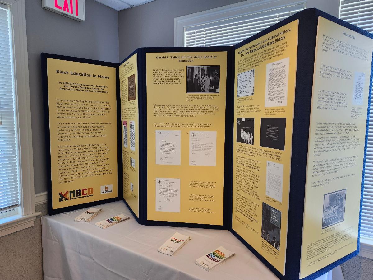 The second exhibit (pictured, right) was created for a Juneteenth celebration and focuses on educational opportunities for Black people in Maine.