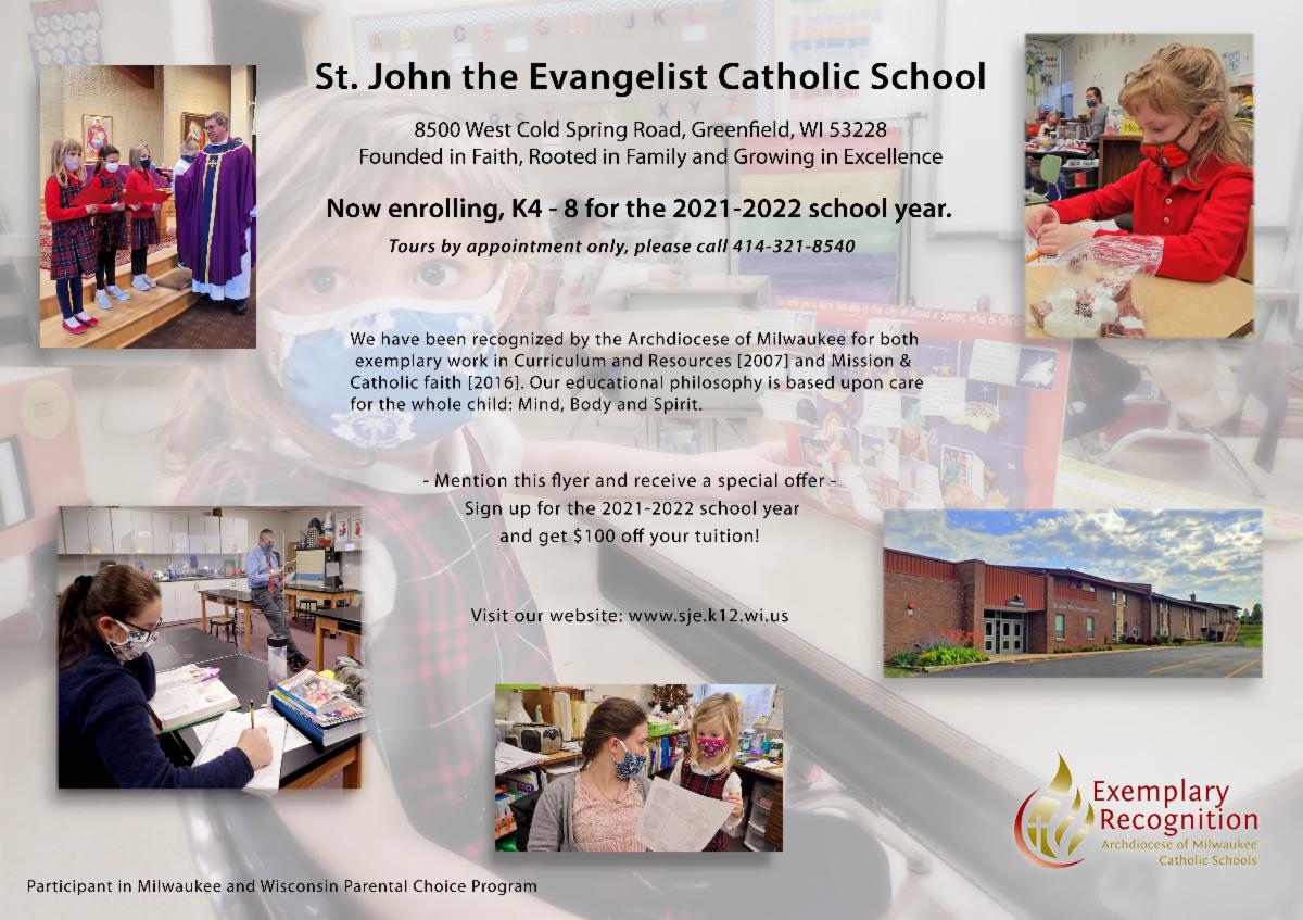 Please keep the needs of St. John the Evangelist in mind as you do your estate planning. For information on how to include the parish as a beneficiary, contact the Parish Office at 414-321-1965.