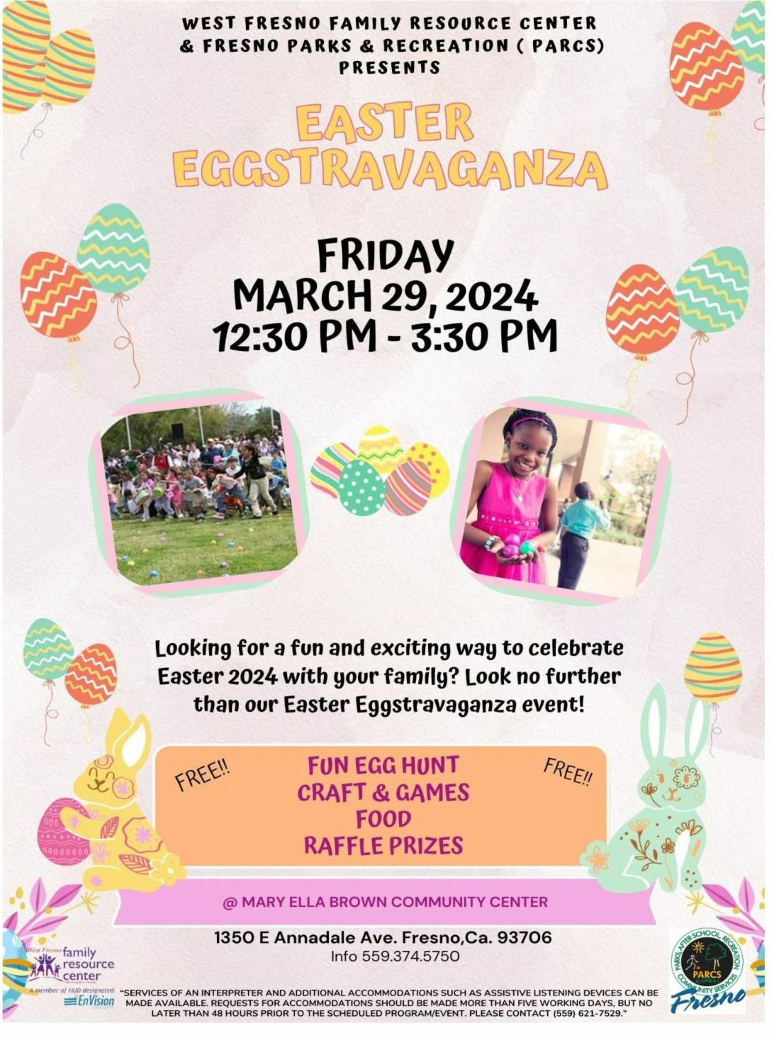 The West Fresno Family Resource Center and the Fresno Parks and Recreation Department are thrilled to invite you and your loved ones to our Easter Egg Extravaganza on March 29, 2009, 12:30 – 3:30 p.m. at the Mary Ella Brown Community Center, 1350 E. Annadale Avenue. | |