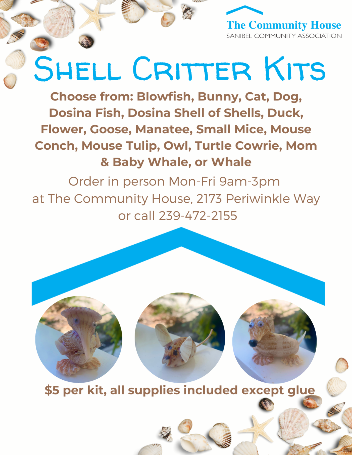 Shell Crafters—Mondays from 10:00am-1:00pm. Click here for more. Join in on the fun, browse and shop for all of your favorite locally crafted items!