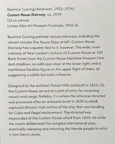 Happy to learn of a painting depicting the stairway inside the Custom House, ca. 1939, in the new Beatrice Cummings exhibition at the Lyman Allyn Art Museum.