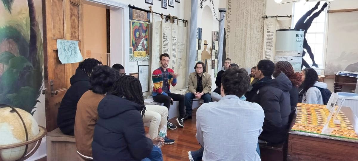 Photo, top: Prof Matt Swagler's Connecticut College African-American history class visited the Amistad exhibition on Thursday. Christina Corcoran