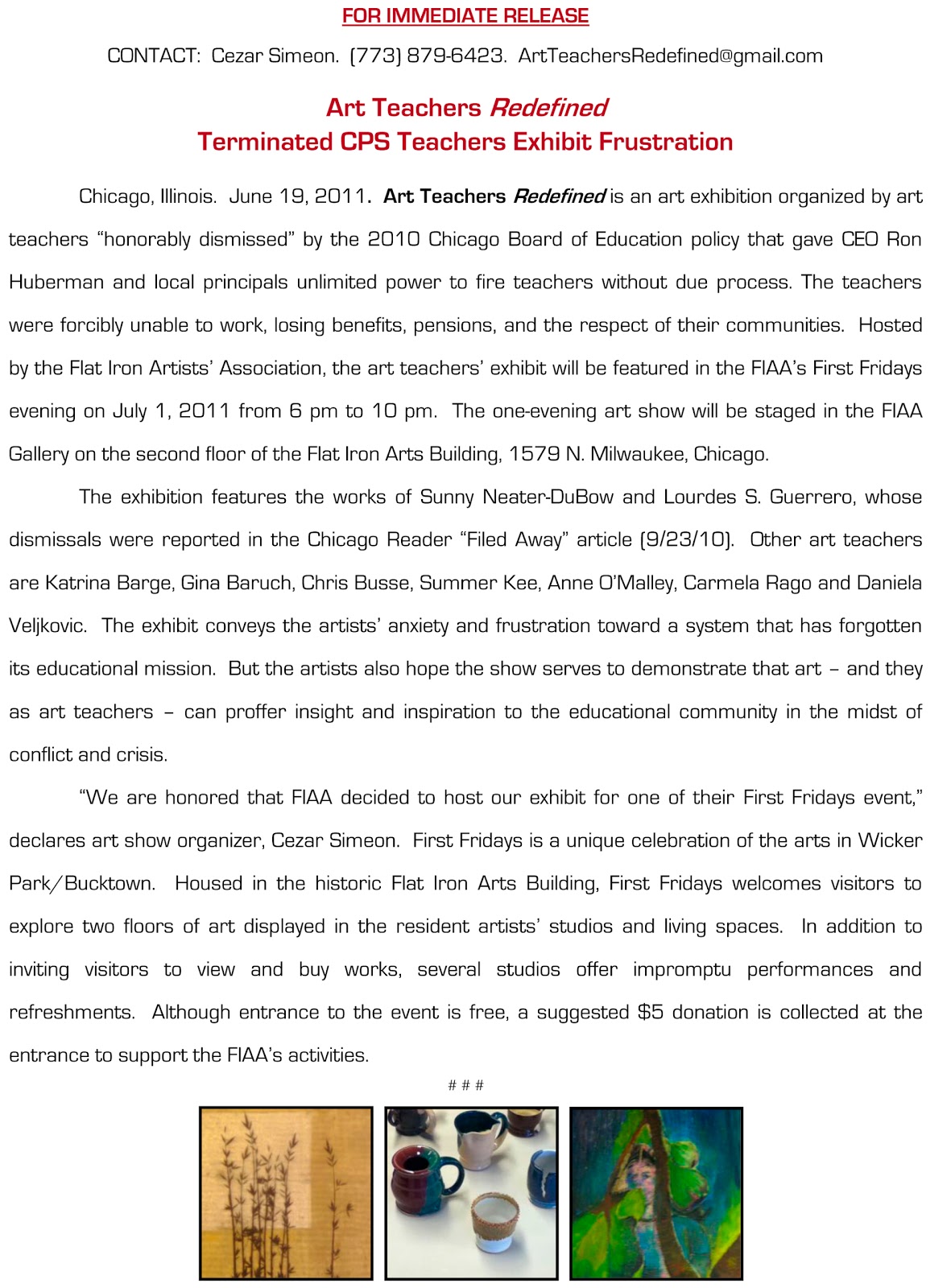 | | Click to enlarge CPS Art Teachers: Redefined press release |