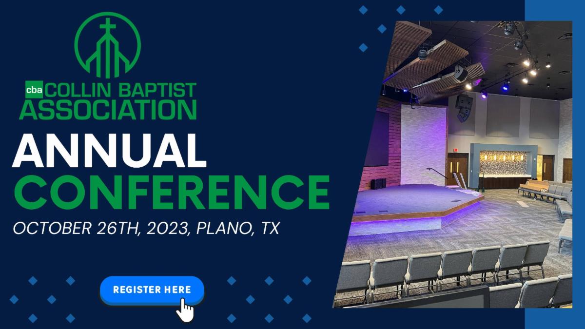 Worship with Robbie Seay, hear an inspiring message from Dr. Steve Bezner, and celebrate what God has done, is doing, and we believe will do in and through Collin Baptist Association as we hear reports from our partner ministries, welcome new members and officers, and much more, including the presentation of this year's Jeremiah Award recipient. Click the photo above, or here to register. |