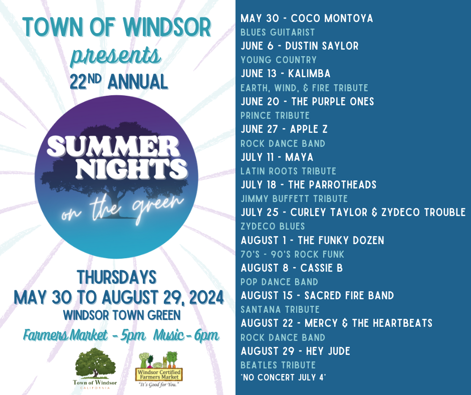 It is the moment you’ve been waiting for… the 2024 Summer Nights on the Green band lineup is here! View the dates below and click the link to view more information about each band. | |