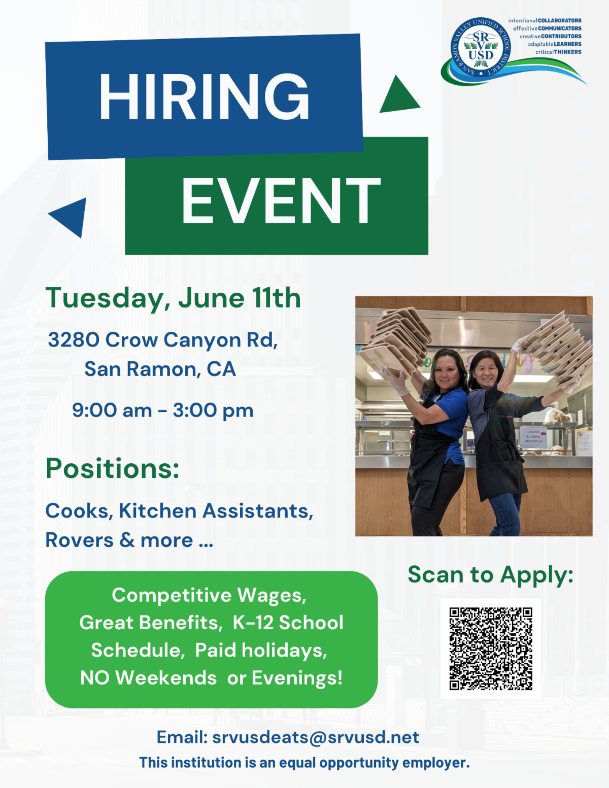 What: SRVUSD Kitchen Positions Hiring Event