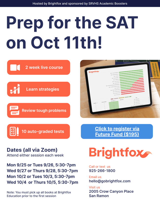 SRVHS ACADEMIC BOOSTERS FALL COLLEGE PREP OPPORUNITIES