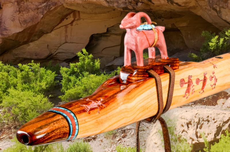 Hand painted by the acclaimed artist Boston Madsen. Two prowling spirit panthers glide down and around the flute. The physical panther totem sit in readiness to spring when the time is just right.
