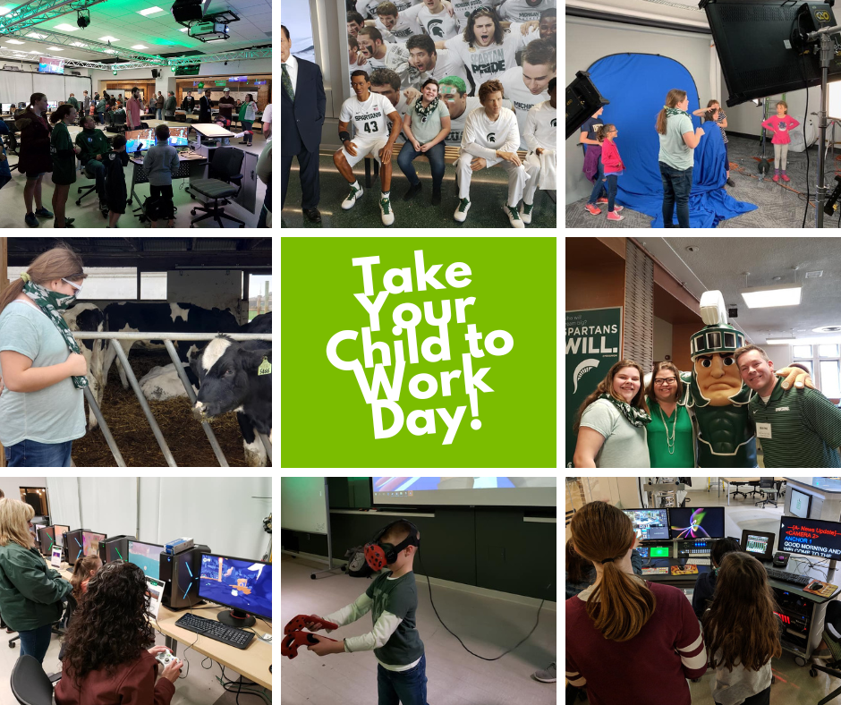 The WorkLife Office is proud to announce the return of the highly attended Take Your Child to Work Day. This much anticipated annual event is one of our favorites to bring to the Spartan community. It highlights the university’s support for its employees, their family members and all of our MSU community. During this one-day event, MSU employees are encouraged to bring their child, or a special child in their life, to celebrate the many career, educational and entertainment events we offer right here at MSU! Most activities are geared for kids ages 8-16 and younger ages are welcome. You’ll want to plan your day to visit the places they will enjoy. More information to come.