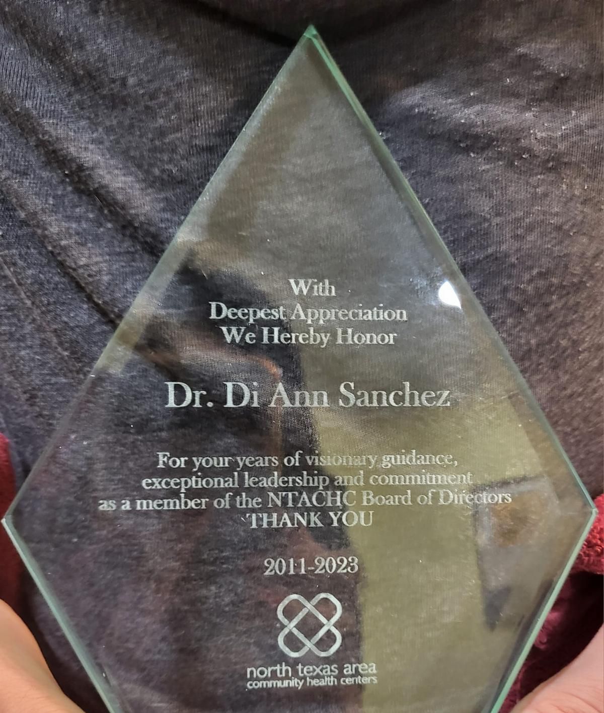 Congratulations to Board Member, Dr. Di Ann Sanchez who was recently honored by the North Texas Area Community Health Center, Inc with the Visionary Commitment and Leadership Award. She has served on their Board for over 10 years!