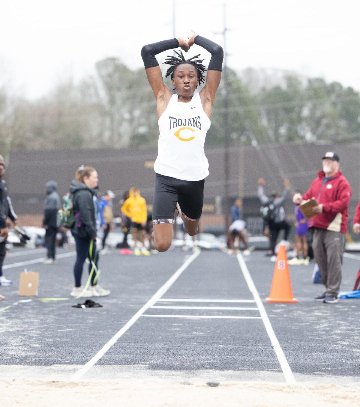 Sophomore Khalen Pinkard begins his descent from the triple jump at the Carrollton Invitational on March 9.