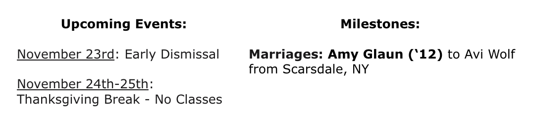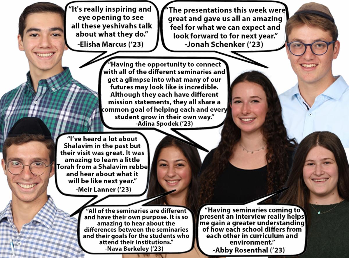 Once we finished watching the video, we were separated into groups. The parents of prospective girls were ushered into the cafeteria for questions and speeches while Mrs. Bejar and Mrs. Horowitz took the girls themselves on an interactive walking tour of the KYHS campus. Meanwhile, the boys and their parents were given model lessons taught by Dr. Isaacson, Mrs. Crowther, Mrs. Epstein, Rabbi Kimche, and Rabbi Wolk, giving the prospective students just a taste of what the KYHS classroom atmosphere is like. Once the girls finished their walking tour, they headed back to the Beit Midrash to participate in a Student Council panel. At the panel guided by Mrs. Hochner, the eighth graders were able to ask our Student Council any questions about things like school schedule, extra-curriculars, homework load, and which classes they enjoyed the most.