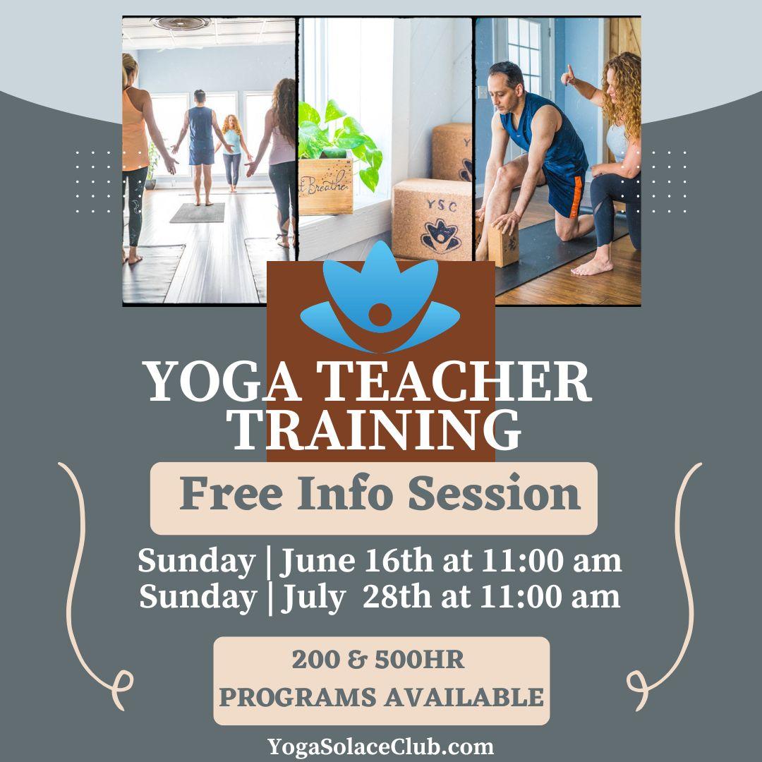 This Yoga Alliance Approved program is exclusive to Yoga Solace Club and is held at our studio with virtual options. Our 200 & 500 Hour Yoga Teacher Training Courses are designed to enhance the trainee’s existing Yoga practice, cultivate teaching skills, and most importantly increase spiritual awareness.