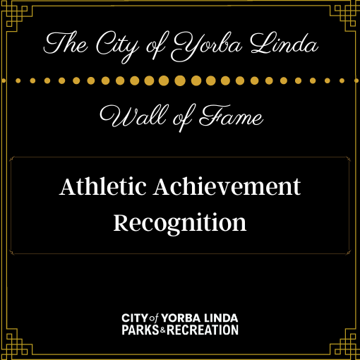Since 1999, the City of Yorba Linda has honored exceptional athletic accomplishments by individual athletes or teams in Yorba Linda and outstanding contributions to athletic organizations serving Yorba Linda through its Athletic Achievement Recognition Wall of Fame program.