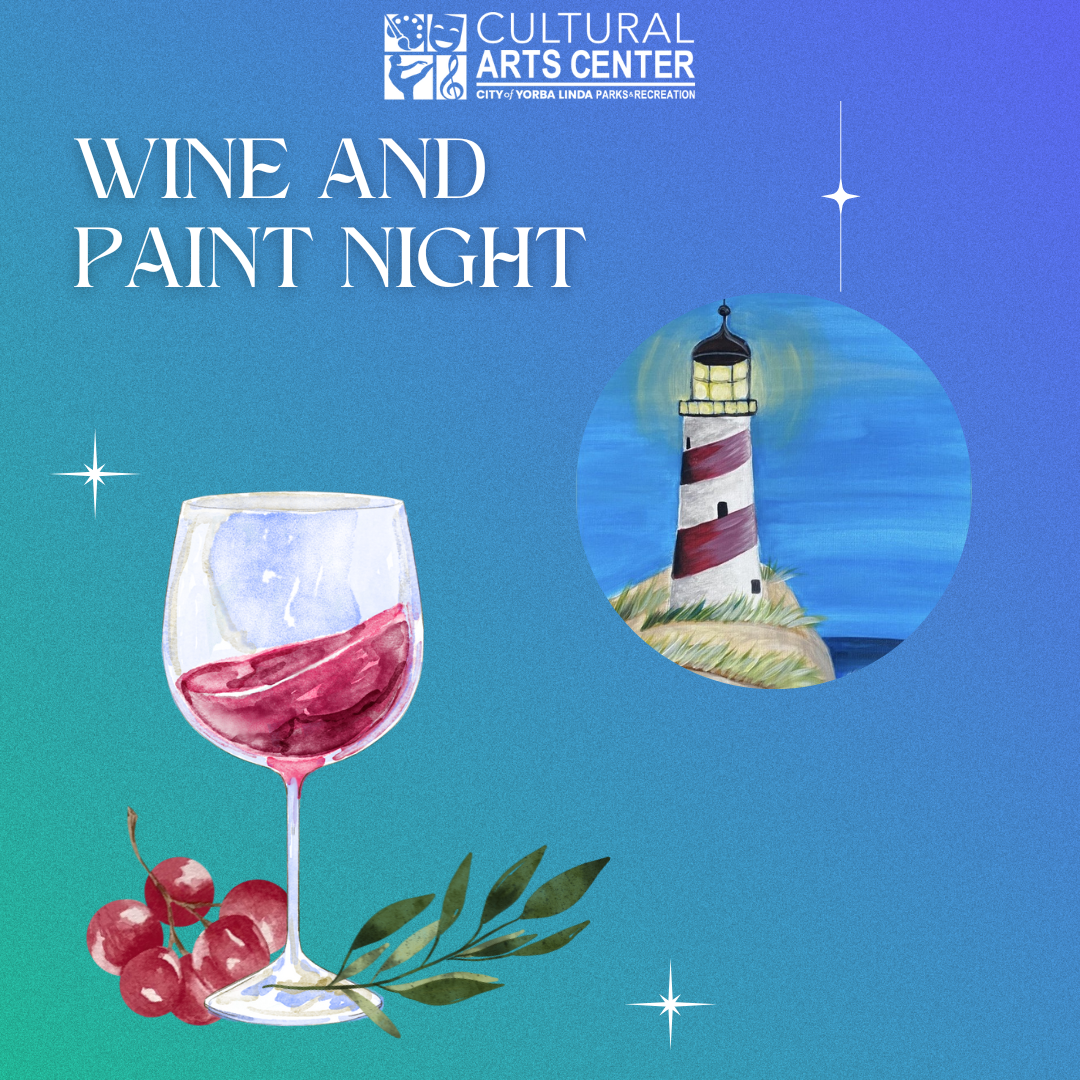 Enjoy a relaxing night out at the Cultural Arts Center for a wine and paint night! Attendees will receive step-by-step instruction from Tara Bergey of Orange Palette Parties to create their own masterpiece while enjoying light snacks and drinks. Ticket includes canvas, all supplies needed, and one complimentary glass of wine or beer with additional drinks available for purchase. Guests must be 21 or older; tickets are $50 per person.
