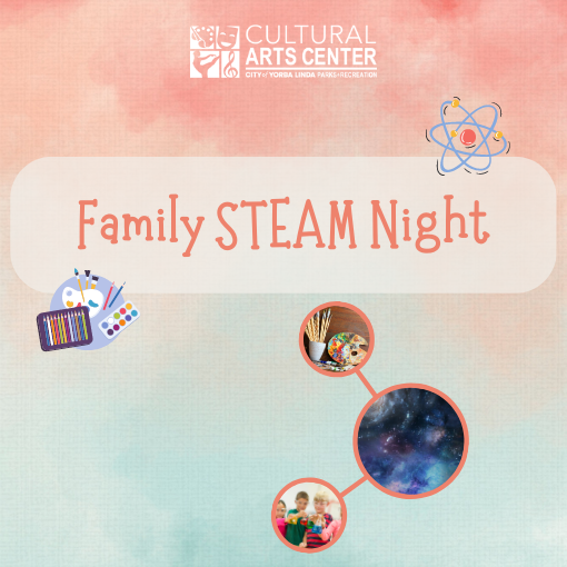 Family STEAM night is back at the Cultural Arts Center! Families are invited to enjoy all new crafts that blend science and ART together. Attendees will enjoy a science show for all ages and a variety of hands-on art and science activities. Only one registration is required per family. $25 per family. Register here to see where art and science meet!