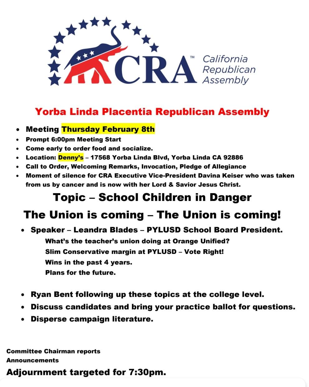 Yorba Linda e-News is a community newsletter that provides information and provokes thought. It does not endorse activities or products listed therein. Editorials written by residents are those opinions of the reader and not those of Yorba Linda e-News. Opposing viewpoints are welcome. Newsletters are also published on Nancy Rikel's Facebook, Yorba Linda Taxpayers Association Facebook, Twitter, Linkedin, Gab, Gettr, Truth and MeWe. News, photos and community activities for publication should be sent to: Time4dance@aol.com | | | |