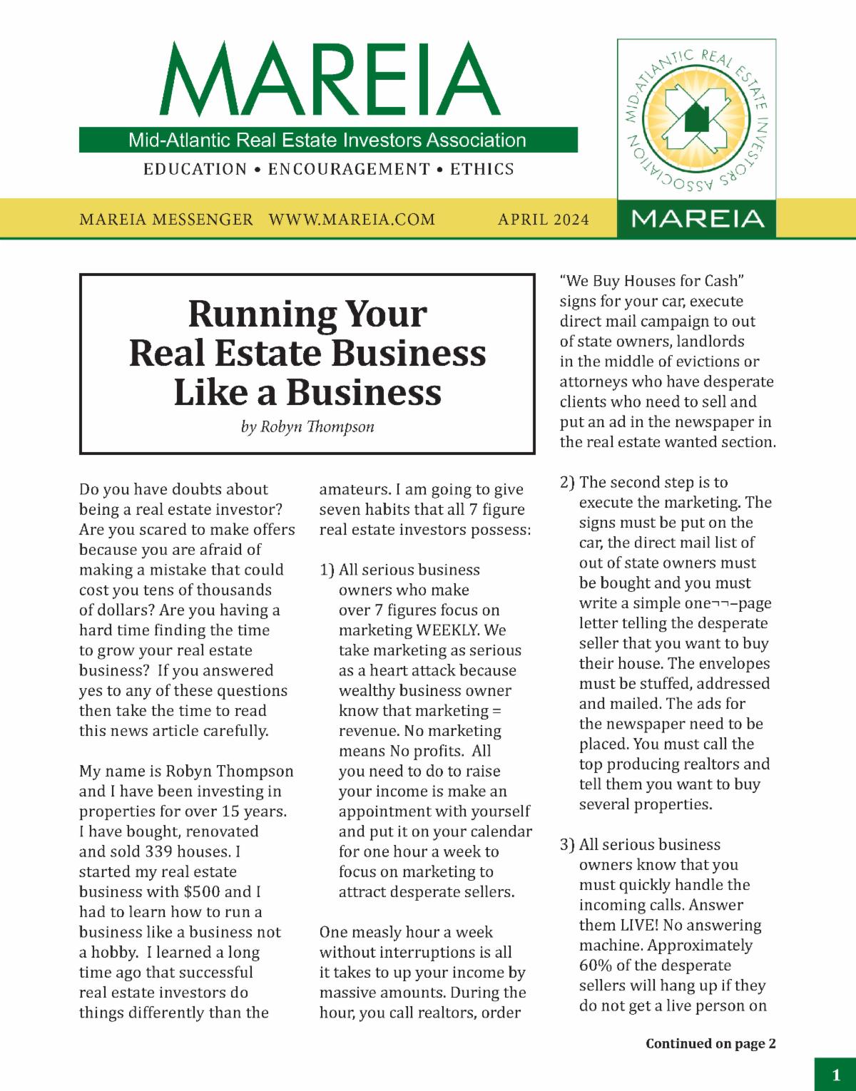 MAREIA is an organization that promotes high standards of professionalism for real estate investors through its Education programs, Encouragement through networking and the exchange of ideas, and a strong sense of personal and professional Ethics, individual integrity and community involvement.