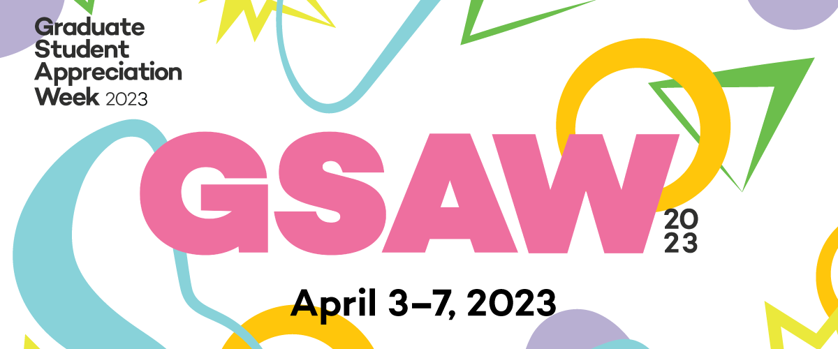 Graduate Student Appreciation Week (GSAW) 2023 kicks off today and continues through Friday, April 7 (with some bonus events on Saturday, April 8). This fun-filled week of events and giveaways celebrates and recognizes Ph.D. and master's students in The Graduate School (TGS)! All TGS students are welcome to participate!