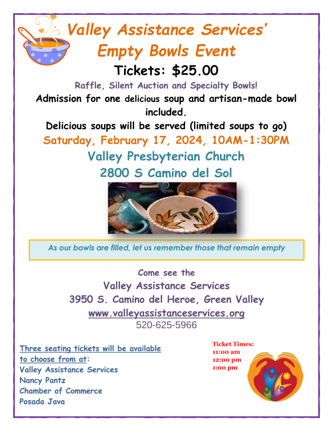 SAT., FEB. 17, 2024 Empty Bowls event by Valley Assistant Services