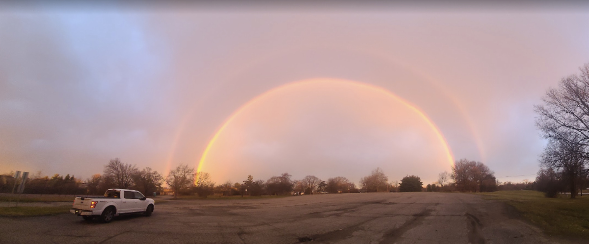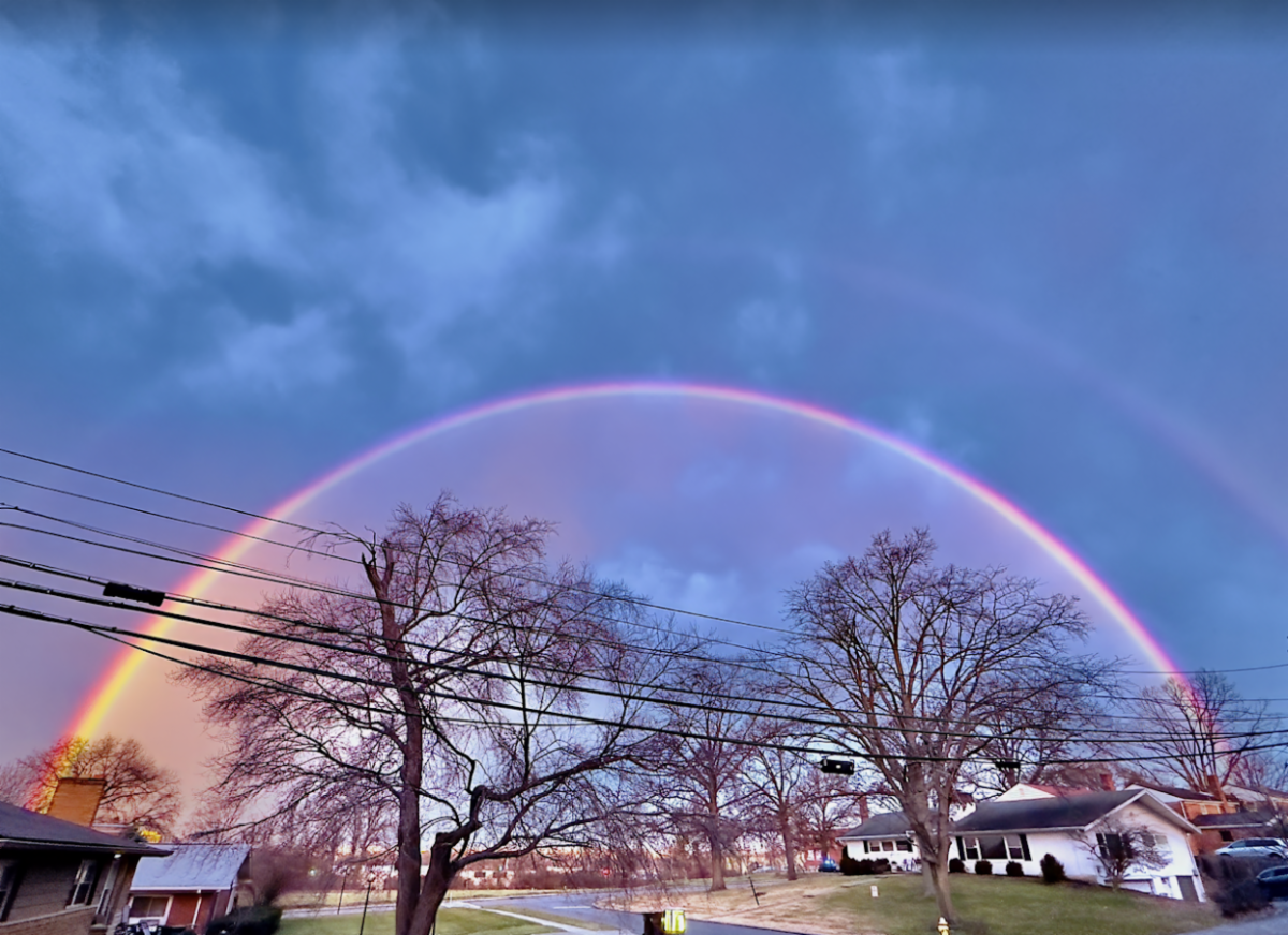 Amberley Village residents responded to our social media challenge to send in their best photos from the double rainbow on the morning of January 12, 2024. The photo above was taken by staff to initiate the challenge, with winning photos submitted by James Campbell from Meadow Ridge Lane (bottom left), and Kate Grise from French Park (bottom right). Click the button below the photos to view the online gallery! | |