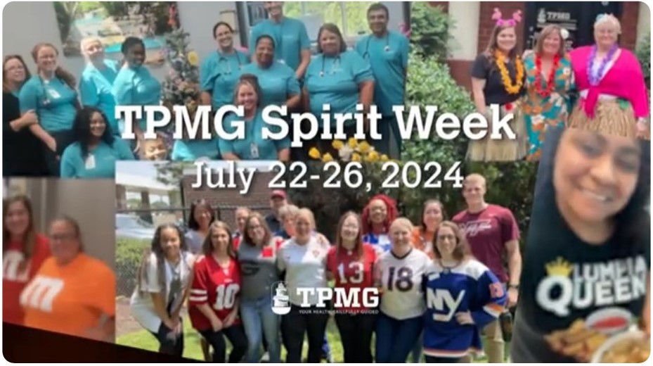 We recognize and celebrate our anniversary with our annual TPMG Spirit Week. If you are visiting any of our sites the week of July 22 - 26, look for team spirit, fun themes, and maybe even some costumes. We are grateful for your continued support as a valued TPMG patient!