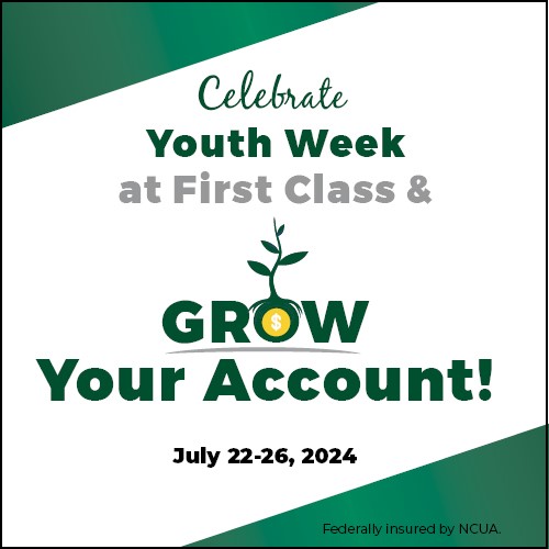 Stop in to a First Class Community Credit Union branch the week of July 22-26 to celebrate Youth Week!