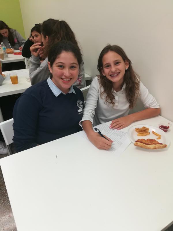 Malka Igilov, an 11th grader who spearheaded the event as the chairperson for this committee, assigned each 6th grader with a "big sister". There was a Get to Know One Another questionnaire and we discovered that our "sisters" have a lot in common. The girls were treated to a pizza lunch. We are looking forward to strengthening the "sibling" bond between the girls as the year progresses.