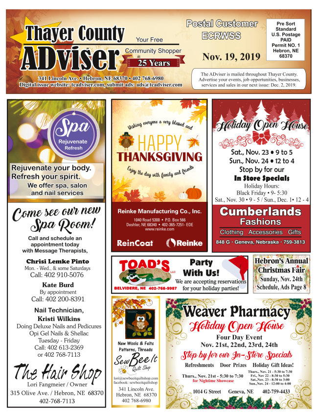 If you would like to advertise in The ADviser, send your ad to ads@tcadviser.com or call 402 768-6980.