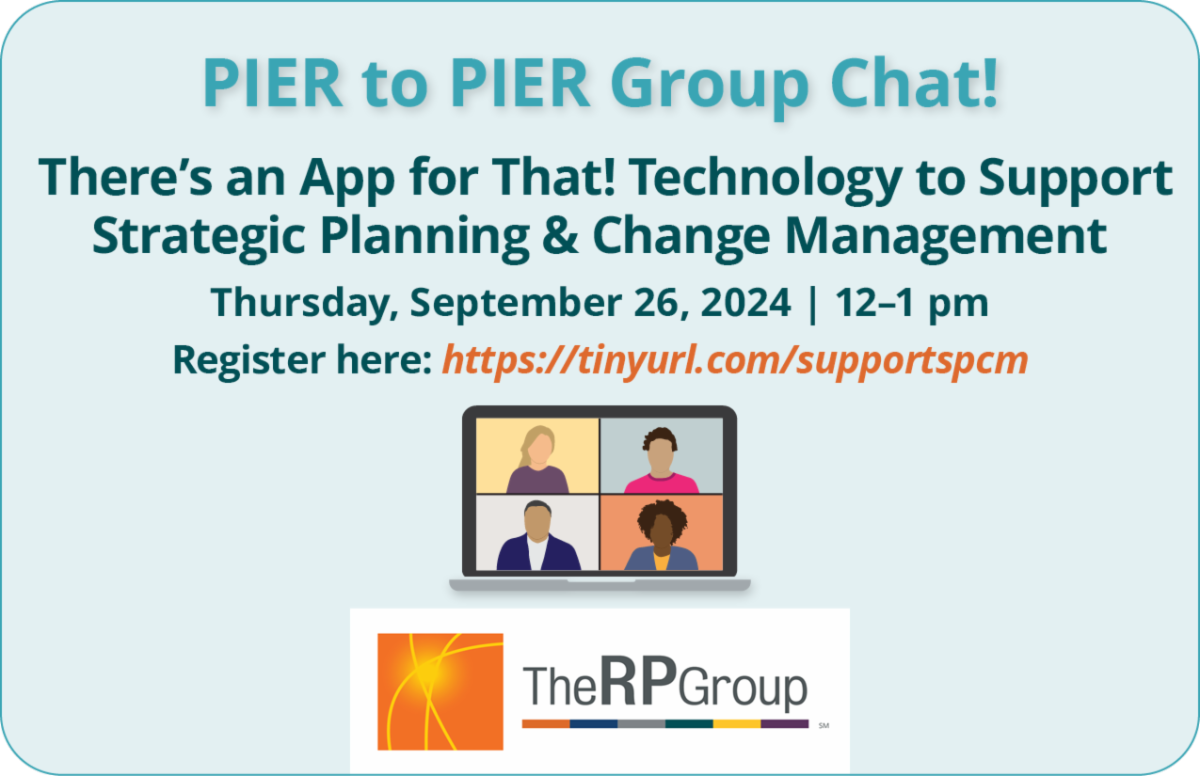 Join us for “There’s an App for That! Technology to Support Strategic Planning & Change Management” on Thursday, September 26, 12–1 pm.