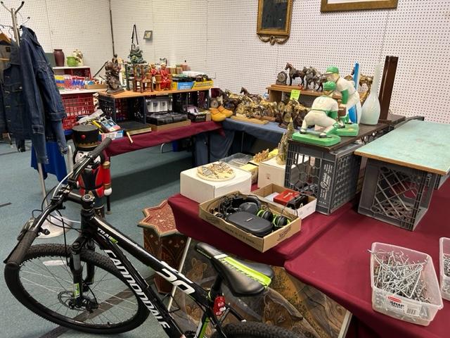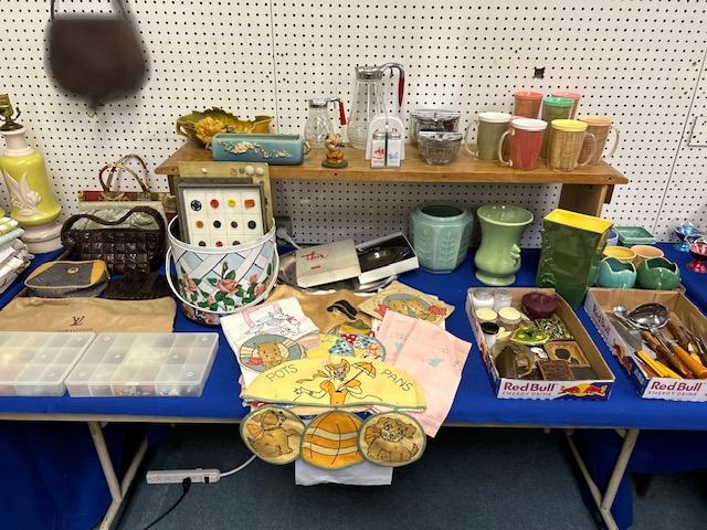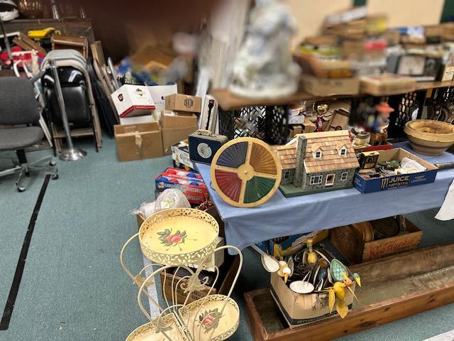 Several 14k Gold Rings, Mixed 10k & 14k Gold Jewelry Lot, 90% Silver Quarters & Dimes, Old Coin Lots, Sterling Lots of Jewelry, Buckles & More, Morgan or Peace Silver Dollars - See Photos For Years & Condition, 1963 or 1968 Mickey Mantle Baseball Cards, (8) 1959 Baseball Cards, (5) 1952 Baseball Cards, 'Ajax 17' Corporate Flammable Liquid Safety Galvanized Trash Can, 1800's Copper Pot/Planter, Military Helmets, Lighthouse Table, 'Irving Amen' Signed 'New York at Night' Print, Industrial Valve Wheel, Excalibur 'StarFire' Sword, Painted Milk Can, Hitachi Stereo Cassette Deck D-W400, Onkyo Quartz Synthesized Tune Amplifier, Marionette Dolls, Slides, 'Remco' Games, Early Bottles Medicinal Bottles, Road Signs, Straightrazors, Boat Dock Cleat, Comic Books, Many Horse Clocks or Metal Horse Clock Toppers, Tiffany Crystal, Lee & Levi Denim Jackets, Sessions Bronco Horse & Rider Clock, Gong Hanging in Holder, 'David Winter' Cottages, 'Seong Moy' 'Broadway Saturday Night' Print, Albert Gilbert Signed & Numbered Print, 'Oliver' Signed Oil on Canvas, K. Zelkas Signed 'My Backyard Full of Silence' Print, Vintage Necklaces w/ Sterling & Coral, Cowboy Lamp, 1963 Bulfighting Poster, Marx Vintage Railroad Accessory Set, Adv. Display Box, Garden Decor, Plant Stand, 84"(7') Long Copper Lined Wood Planter, Mixed Misc. Pottery: Roseville, McCoy, Daniel Boone Handmade and More, Pyrex Plate Set, Oval Pyrex Plates, Jadeite Bowls or Plates, Hall China, Decorative Hardware, Vintage, Clean Mid Century Linens, Purses, Bakelite Utensils, Vintage Glass Christmas Ornaments or Miniature Tabletop Tree, Mid Century Drinking Glasses, Vintage Steering Wheels & Vehicle Horn, Various Holiday Decor, Vintage Radios, Yellowware Bowls, 'Maxon' Utility Tester, Sears Walkie Talkies, Copper Pots (Portugal), Madonna Religious Statue, 1895 Kerosene Oil Lamp Filler Glass Can w/ Spout, Antique Wooden Buddha from Thailand, Vintage 'Windsor' Clock, Invicnta & Other Watches, Decorative Metal Antique Stove Topper, Vintage Belt Buckles or Beaded Purses, 5 Pc. Victorian Tea Set, Vintage Washboards, 1950's Doll Crib w/ Drop Down Side, Celluloid Dresser Items, Art Deco Cupid & Angel Prints, Large Baskets, Cannondale 21 Speed Bicycle, Trek Kids Bike, 1940's Signed 'Coro' Bracelet, Edison Bulb Cable Lighting, Bloomspect & Aogled LED Plant Lighting, Toshiba TV, 'Crest Air Conditioner, Beautiful Hope Chest, Pokemon Baking Moulds,