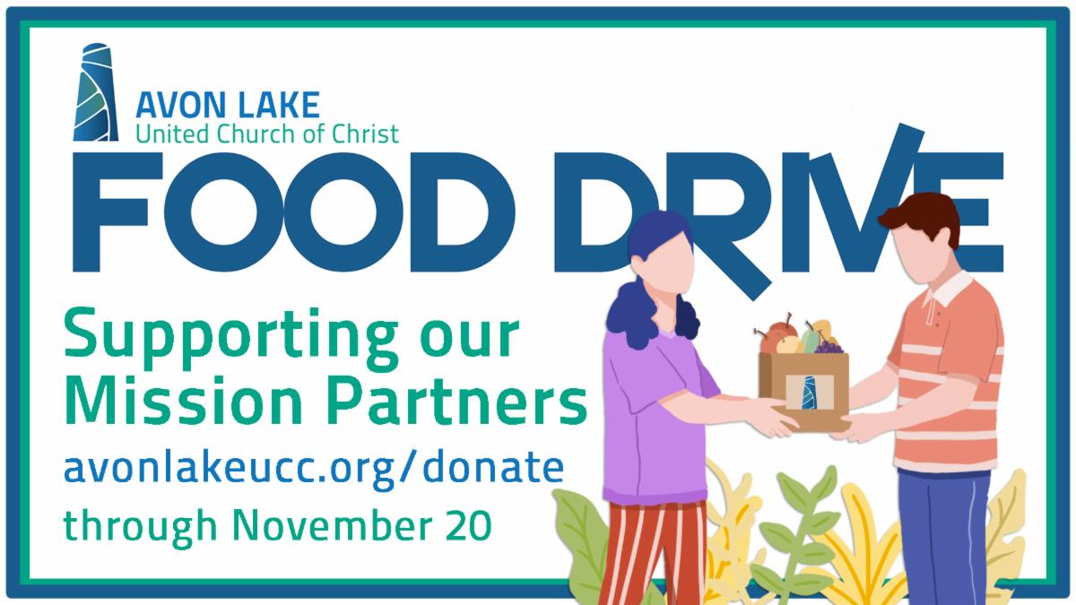 Your 2022 Fall Food Drive kicks off Sunday, November 6 and will run through November 20. We will be taking donations via Realm and the Connect app, avonlakeucc.org/donate, checks, or cash.
