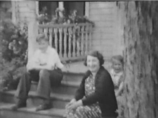 The house was located next to Paul Weber’s Garage, and you can see his tow truck in one of the pictures, which is a screenshot of a home movie Paul made in 1941. The house was probably built around 1902 and originally had an open front porch with railings and pretty fretwork along the top of the porch roof. The porch was closed-in at some point, but still had windows until the house was rehabbed around 2010. The double hung windows and small attic vent at the front peak were replaced at that time also.