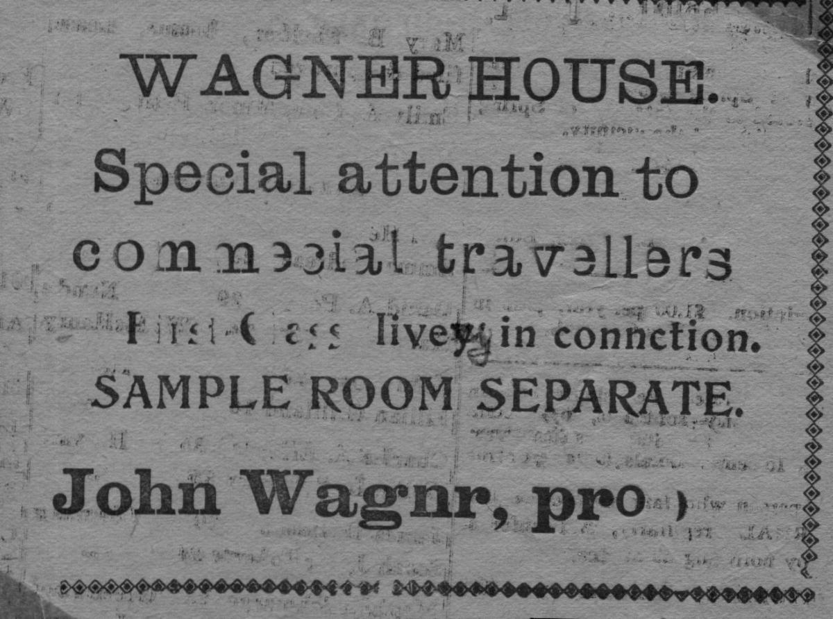 The arrival of the railroad in 1900 had started a building boom in Spring Grove. In 1901, John Wagner, a 45-year-old widower, gave up farming and sold the old homestead settled by his parents to build the Wagner House hotel by the railroad tracks. His son, Joe G., who was 21, built the Sample Room tavern, and his name was on the awning. The upstairs of the Sample Room was rented out as living space as related in the local newspaper in March 1903: Dan McCann and family are moving into the rooms over Joe Wagner's Sample Room on Sunnyside."