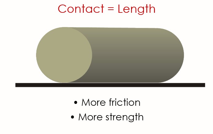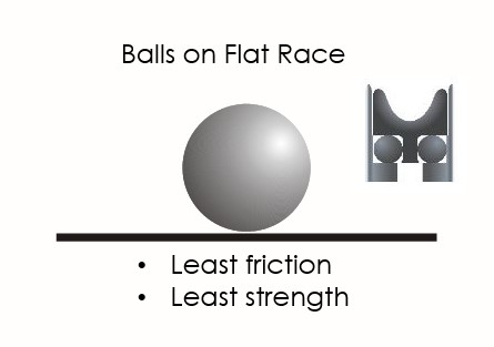 More contact between the bearing and the race increases friction, but also increases load capacity. Balls are loaded on small points, cylindrical rollers are loaded along their length, and sleeve bearings are curved around the shaft so a large portion is in contact. Unlike balls and cylinders, sleeves are not prone to being flattened by extreme or static loads because they already conform to the curvature of the shaft.