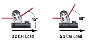 Lead car adjuster tackle load is dependent on the angle of deflection of the sheet in the lead car, but is generally assumed to be .3 of lead car load when deflection is 45° and .5 of lead car