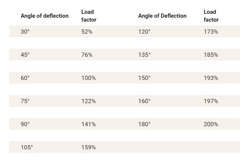 Load on a block is a combination of the load on the line passing through the block, plus a block-loading factor, which is determined by the angle by which the block turns the sheet . For example, a foot block that turns a sheet 180° will see a load equal to twice the load on the sheet. A deck organizer, which turns a halyard only 30°, will see just 52% of the load on the halyard.
