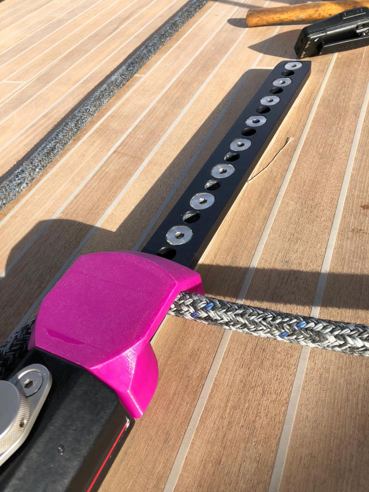 "It was clear from our first couple of regatta’s that we needed something to sort out a sheeting issue for our race setup. After a brief chat with Simon Botes from Harken ProCare Palma we had a good idea of what was needed and a couple of weeks later Harken came back with designs for a custom in-hauler car.