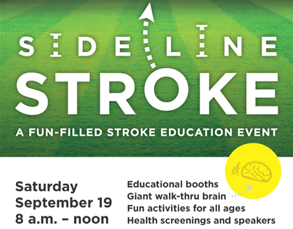 Sideline Stroke is a FREE, fun-filled community education event with a football theme to promote awareness of the warning signs of stroke. It will feature education booths, health screenings and fun activities for all ages, including a giant walk-thru brain.