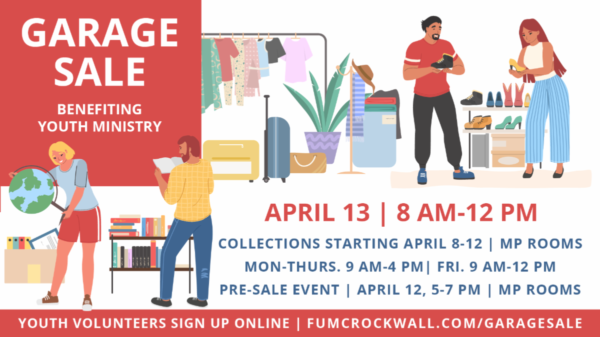 Our annual Youth Garage Sale is THIS Saturday, April 13, 8 am-noon!