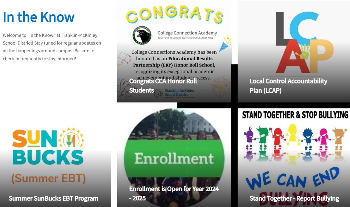 Visit the new “In the Know" section on the Franklin-McKinley School District’s website! Check back for regular updates on all the happenings around campus.