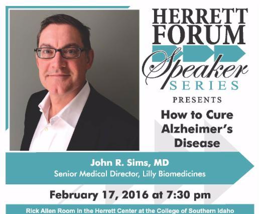 Almost everyone knows someone, a friend or family member, who deals with dementia or Alzheimer's disease. Have you ever wondered or worried about whether it will affect your own life? Dr. John R. Sims, Senior Medical Director for Lilly Biomedicines, will discuss 'How to Cure Alzheimer's Disease' in his Herrett Forum presentation at 7:30 p.m. Wednesday, Feb. 17 at the Herrett Center's Rick Allen Room.