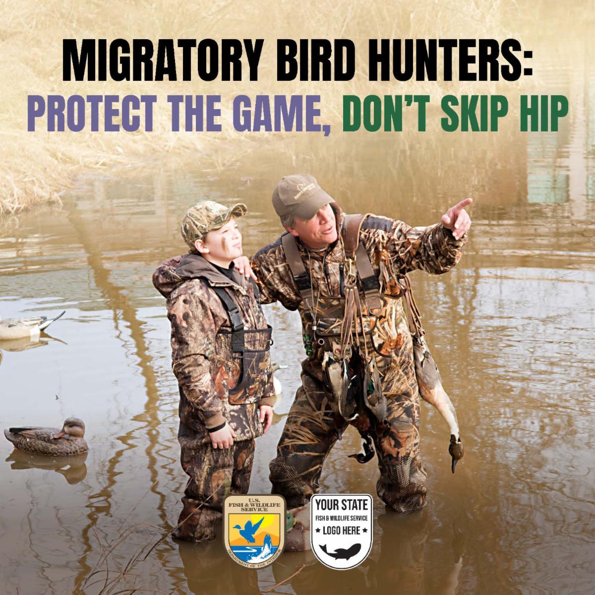 The HIP Marketing Toolkit contains resources, strategies, and tactics state agencies and partners, like conservation districts, can use to communicate the importance of HIP registration to migratory bird hunters. Check it out and help encourage migratory bird hunters to “Protect the game, don’t skip HIP.”